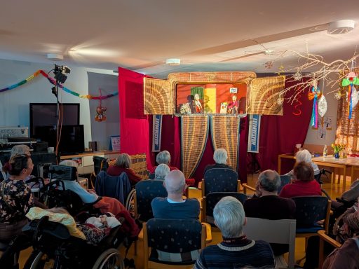 Trotz des vielen Schnees und der winterlichen Bedingungen konnte die Aufführung wie geplant stattfinden und zauberte allen Anwesenden ein Lächeln ins Gesicht. Die Nähe zum Publikum, der Charme des Korbtheaters und die besondere Atmosphäre machten diesen Besuch zu einem echten Highlight im Alltag unserer Einrichtung mit zahlreichen schönen Momenten, Lachen und staunenden Gesichtern.